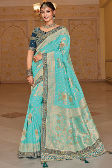 Turquoise Color Dola Silk Fabric Reception Wear Weaving Work Saree