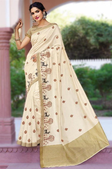 Vartika Singh Art Silk Fabric Beige Color Winsome Embroidered Saree