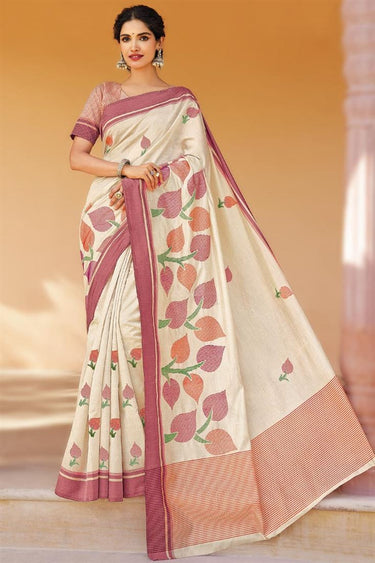 Vartika Singh Beige Color Art Silk Pleasant Embroidered Saree