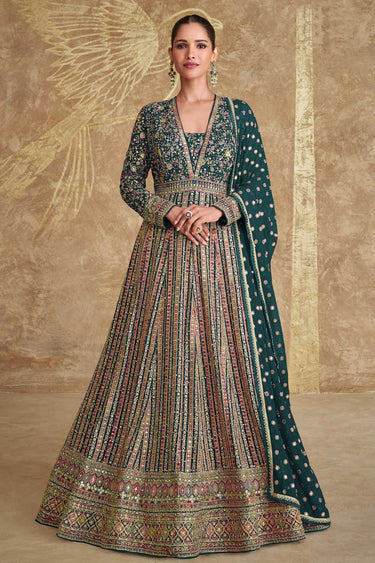 Vartika Singh Glamorous Georgette Gown With Dupatta In Green Color