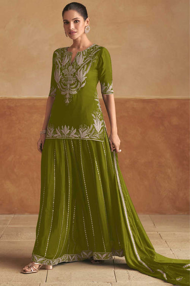 Vartika Singh Green Color Chinon Fabric Chic Palazzo Suit
