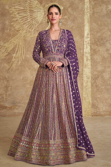 Vartika Singh Magnificent Georgette Gown With Dupatta In Lavender Color