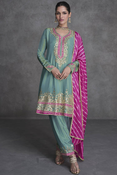 Vartika Singh Organza Silk Fabric Captivating Sea Green Color Readymade Salwar Suit