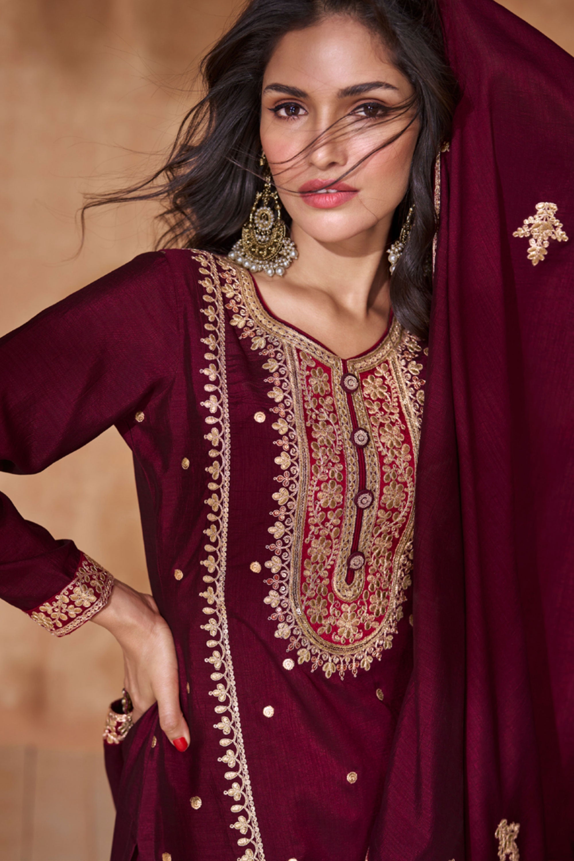 Exude timeless grace in our Silk Fabric Readymade Palazzo Suit. Crafted with precision from high-grade silk, this outfit includes a top, a pair of palazzo trousers, and a dupatta to create a polished look. Its free size is specifically tailored for size-42, with a 44 inch long top and 41 inch bottom length, providing the ideal blend of style and comfort. Make your wardrobe stand out with this sophisticated ensemble, a perfect blend of traditional and modern aesthetics.