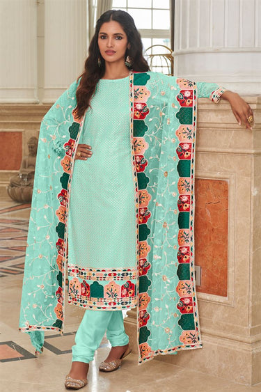 Vartika Singh Radiant Light Cyan Color Georgette Palazzo Suit