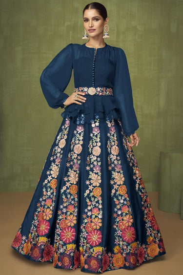 Vartika Singh Stunning Blue Color Sangeet Wear Georgette Sharara Top Lehenga