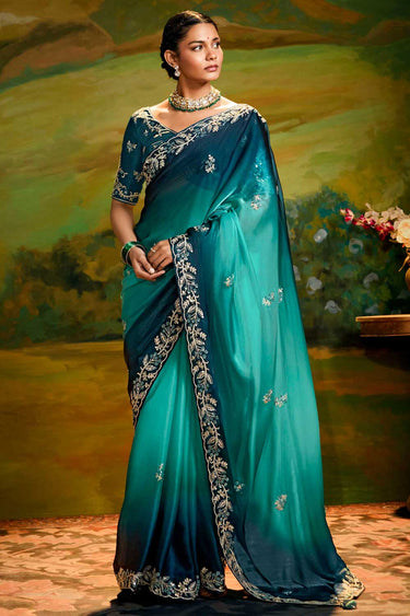 Vibrant Dark Cyan Color Fancy Saree with Intricate Border Finish