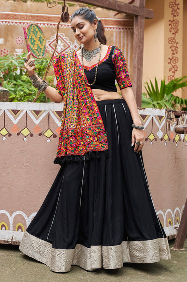 Viscose Rayon Fabric Black Occasion Wear Embroidery Work Readymade Lehenga Choli