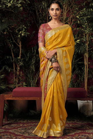 Viscose Silk Mustard Color Weaving Work Ethnic Wear Saree