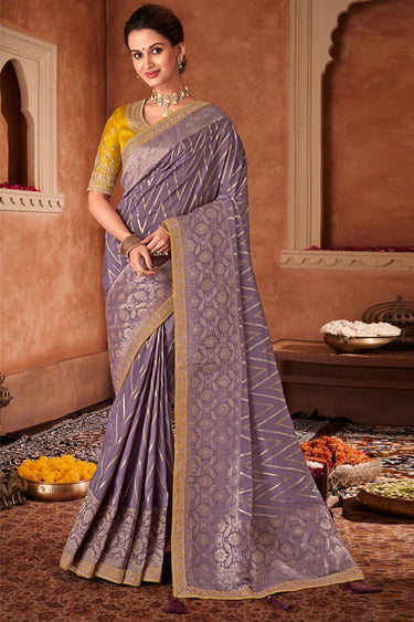 Weaving Work Lavender Color Dola Silk Fabric Saree