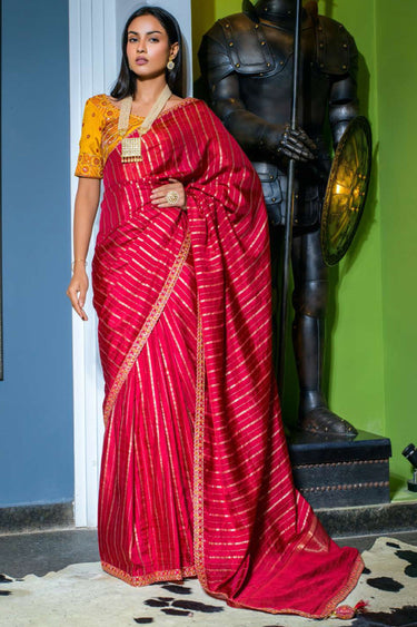 Weaving Work On Flamboyant Art Silk Saree In Magenta Color