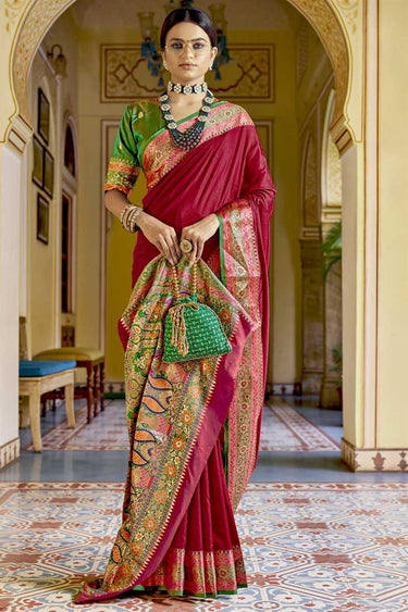 Weaving Work On Maroon Color Banarasi Style Festival Wear Art Silk Fabric Saree