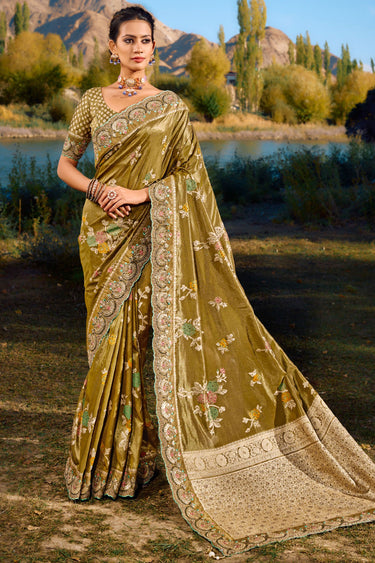 Weaving Work Silk Fabric Wedding Wear Saree In Green Color