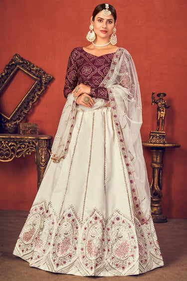 Wedding Wear Art Silk Fabric Embroidered Lehenga Choli In Off White Color