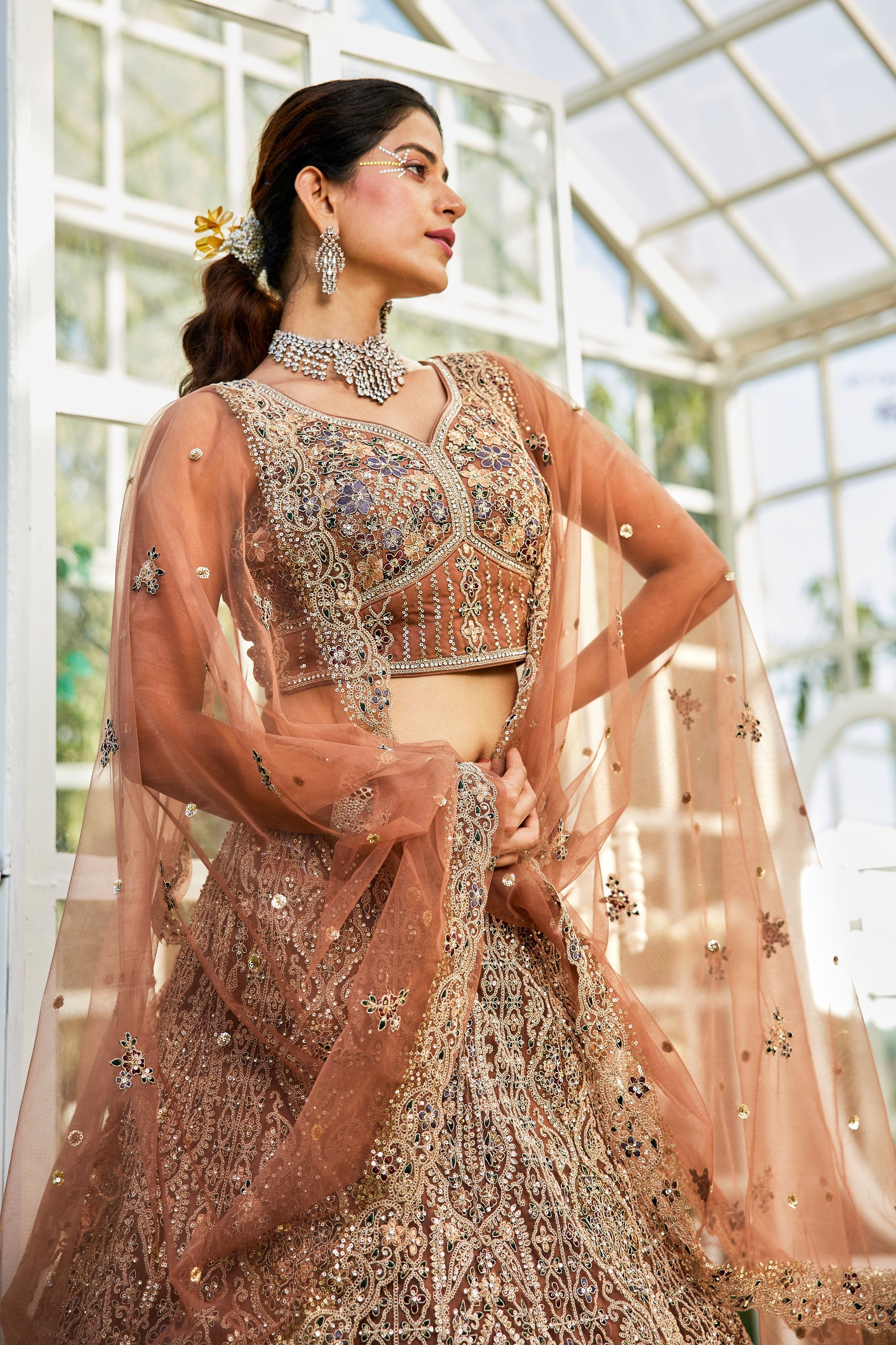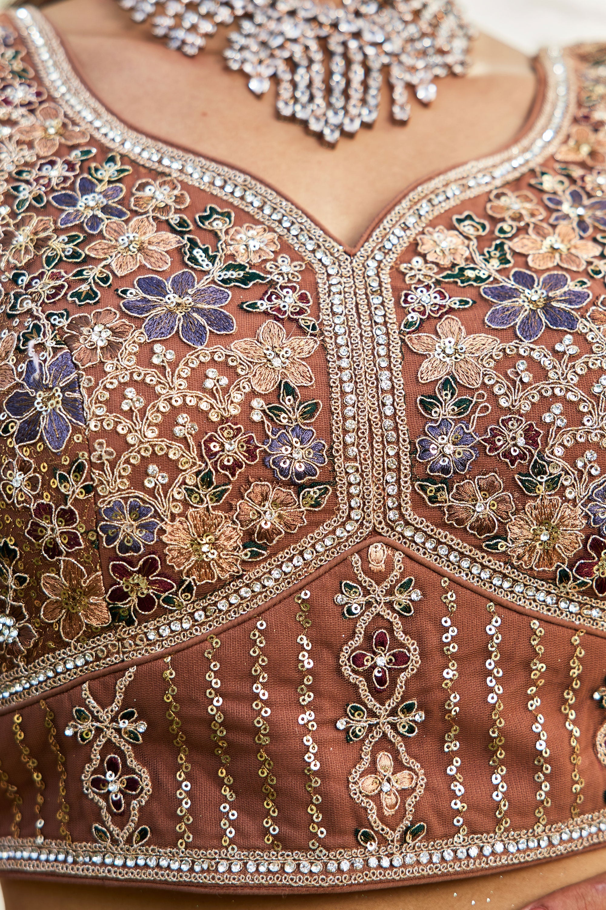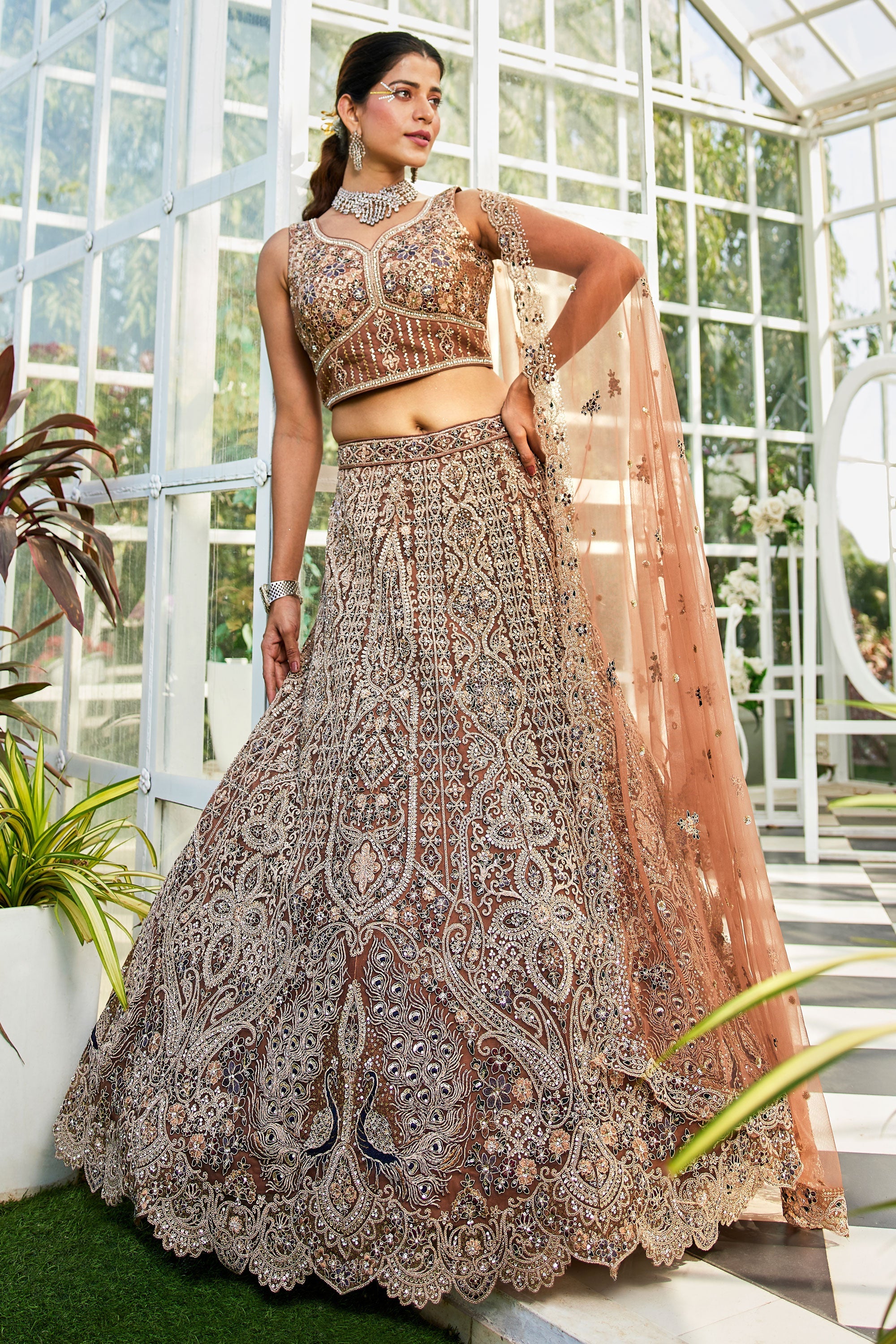 Wedding Wear Charm Brown Heavy Embroidered Lehenga Choli