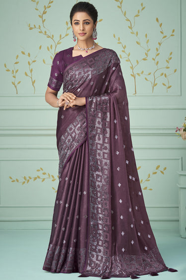 Wedding Wear Chiffon Fabric Purple Color Sequins Work Saree