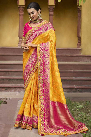 Wedding Wear Inventive Yellow Color Saree In Silk Fabric
