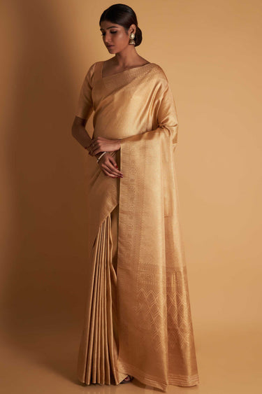 Wedding Wear Two Tone Kanjivaram Silk Fabric Weaving Work Saree In Cream Color