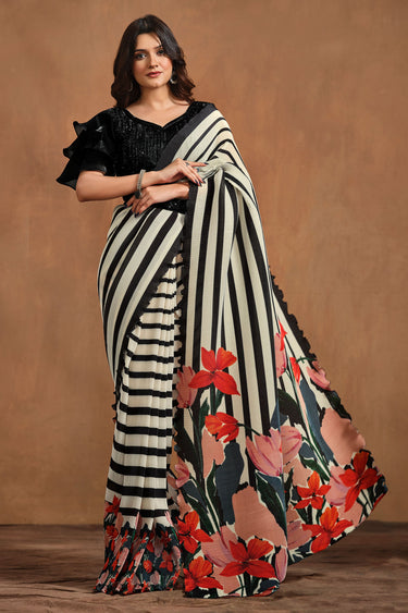 Be the center of attention with the Scarlet Reach Designer Ready To Wear Party Wear Saree. Featuring a stylishly stitched blouse that comfortably fits sizes up to 38 inches, with a margin for up to 42 inches, this saree combines comfort and elegance seamlessly. The vibrant scarlet hue adds a touch of sophistication, ideal for parties and special events. Keep in mind, there may be minor color differences due to photographic lighting. For best care, dry-clean the garment for the first wash. This saree promises a graceful and chic appearance every time.