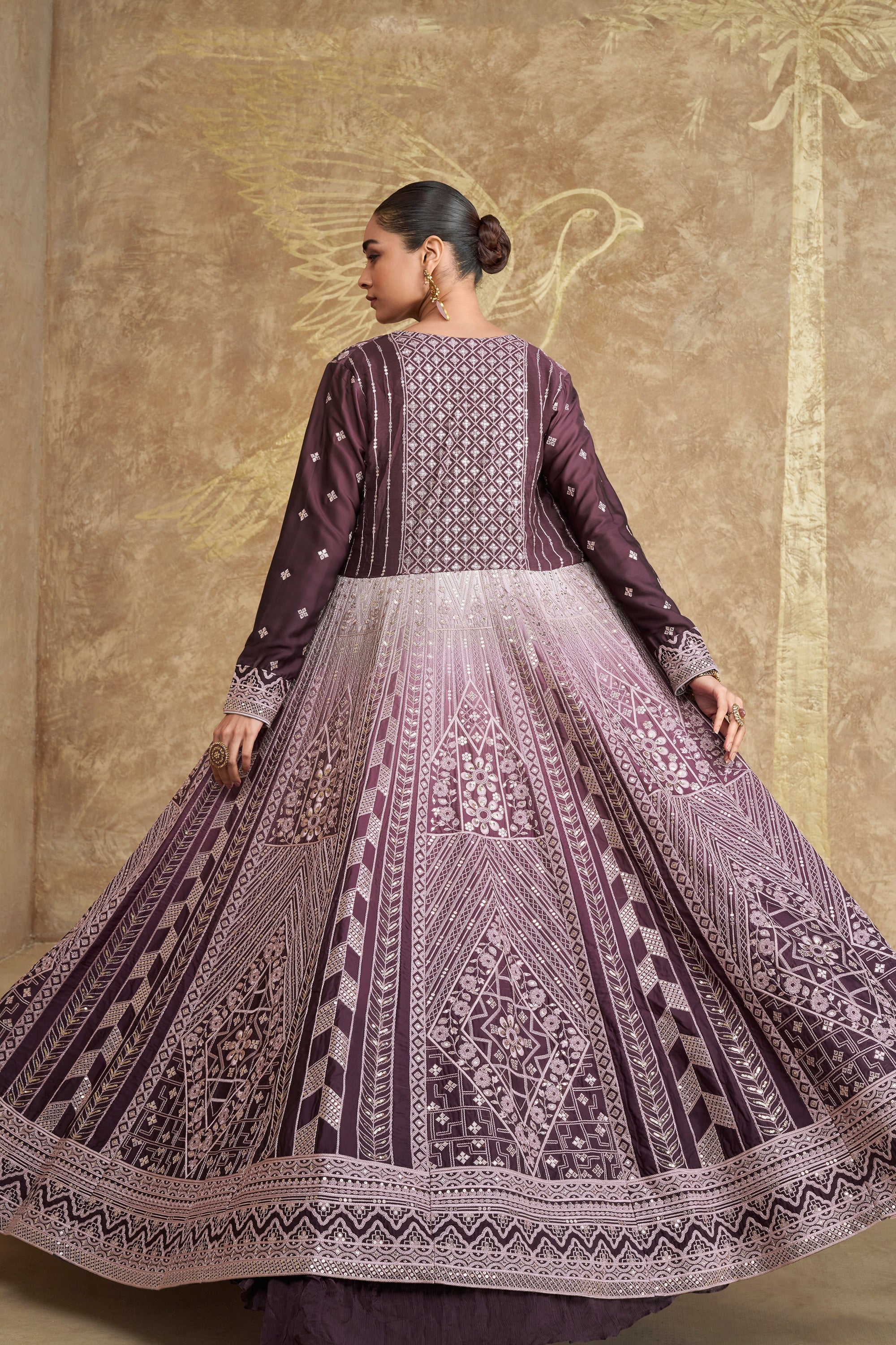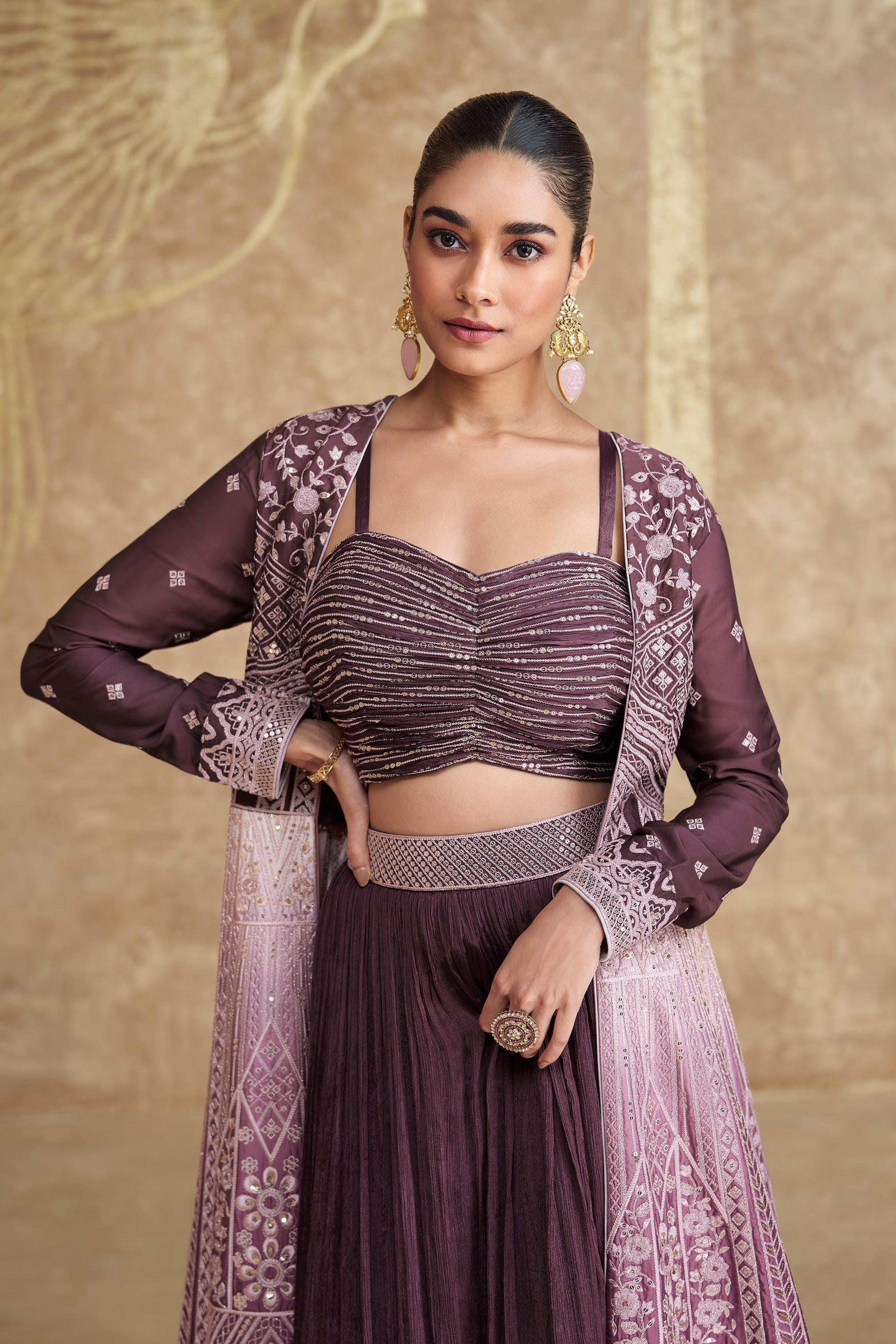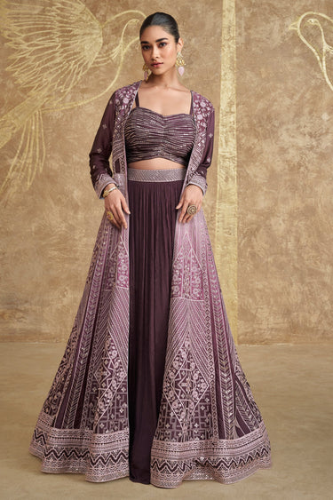 Wine Chinon Silk Readymade Lehenga Choli With Jacket