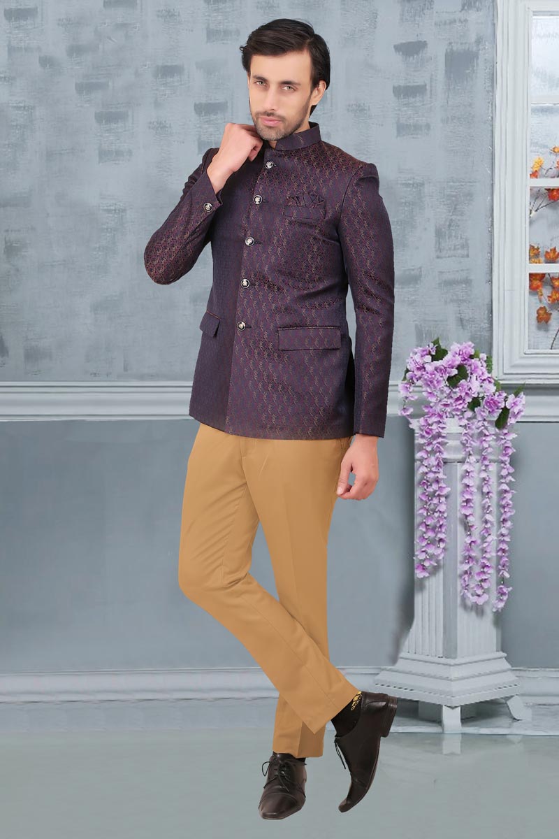 Wine Color Designer Rayon Fabric Wedding Wear Readymade Jodhpuri For Men