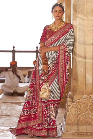 Wine Color Function Wear Printed Patola Silk Fabric Incredible Saree With Semi Stitched Blouse