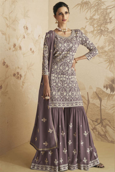 Wine Color Georgette Fabric Adorming Sharara Suit For Function