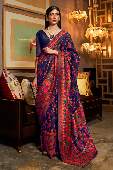 Winsome Kashmiri Modal Handloom Weaving Silk Blue Color Saree