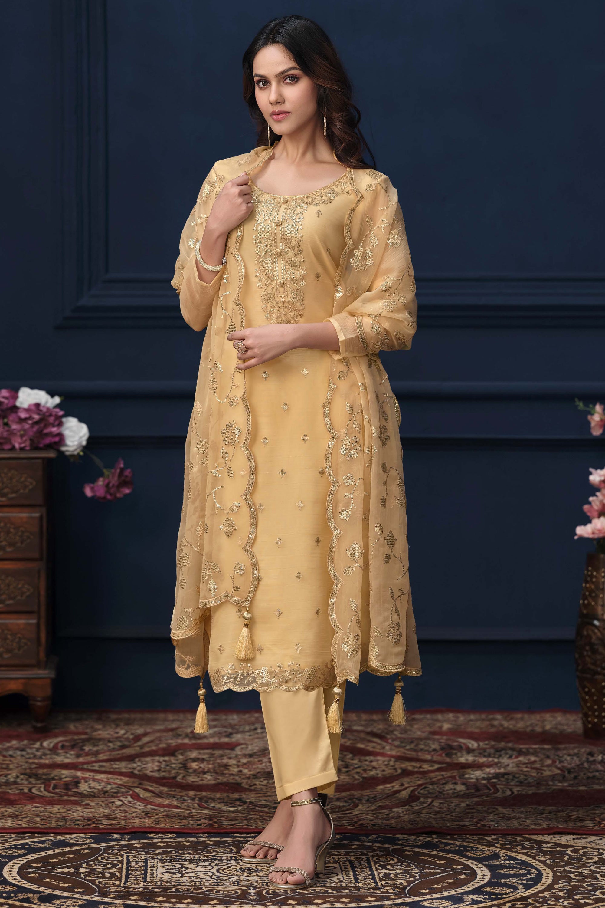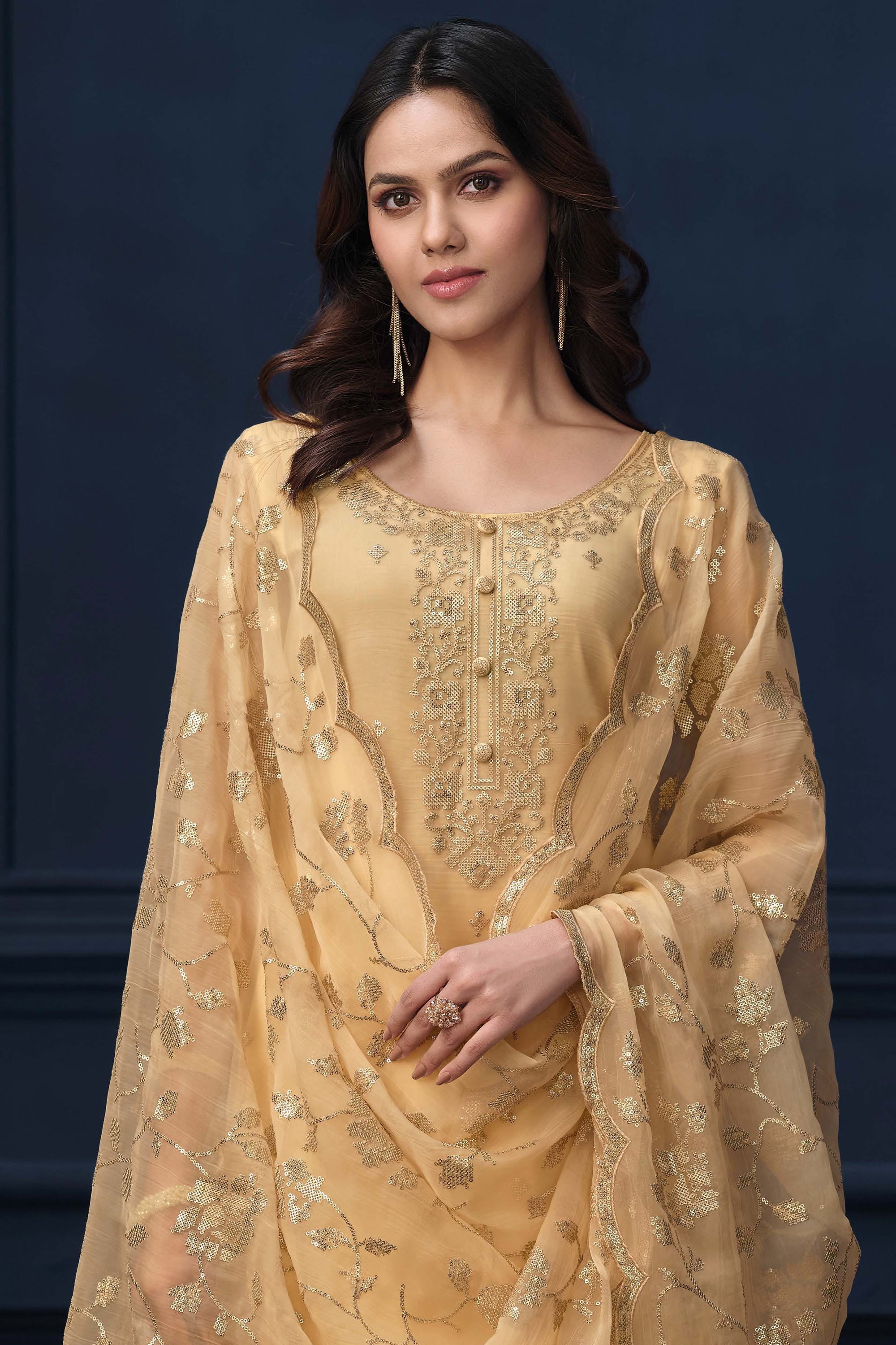 Experience the allure of elegance with our Chiffon Organza Sequins Work Straight Cut Salwar Suit With Dupatta. This sophisticated attire showcases a seamless blend of premium chiffon organza fabric, adorned with intricate sequin work. The rich color and straight cut design promise a graceful fit that flatters every figure. Ideal for festive occasions, weddings, and celebrations, this suit comes with a beautifully matched dupatta, enhancing its overall appeal. Whether you want to make a grand entrance or simply enjoy a special event, this salwar suit is your perfect choice. Indulge in luxurious style and stand out effortlessly.