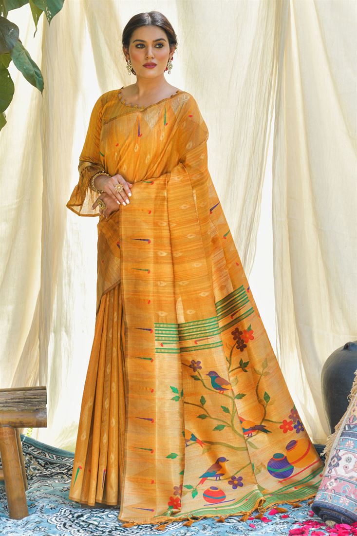 Introducing our exquisite Yellow Color Paithani Silk Saree, a true masterpiece that will add elegance and charm to any occasion.