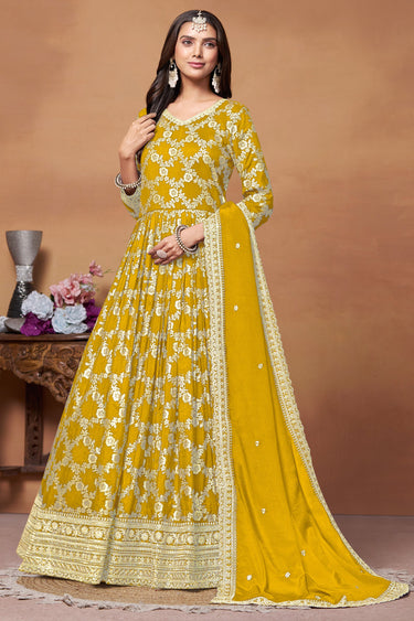 Yellow Color Jacquard Fabric Adorming Function Wear Anaraklai Suit