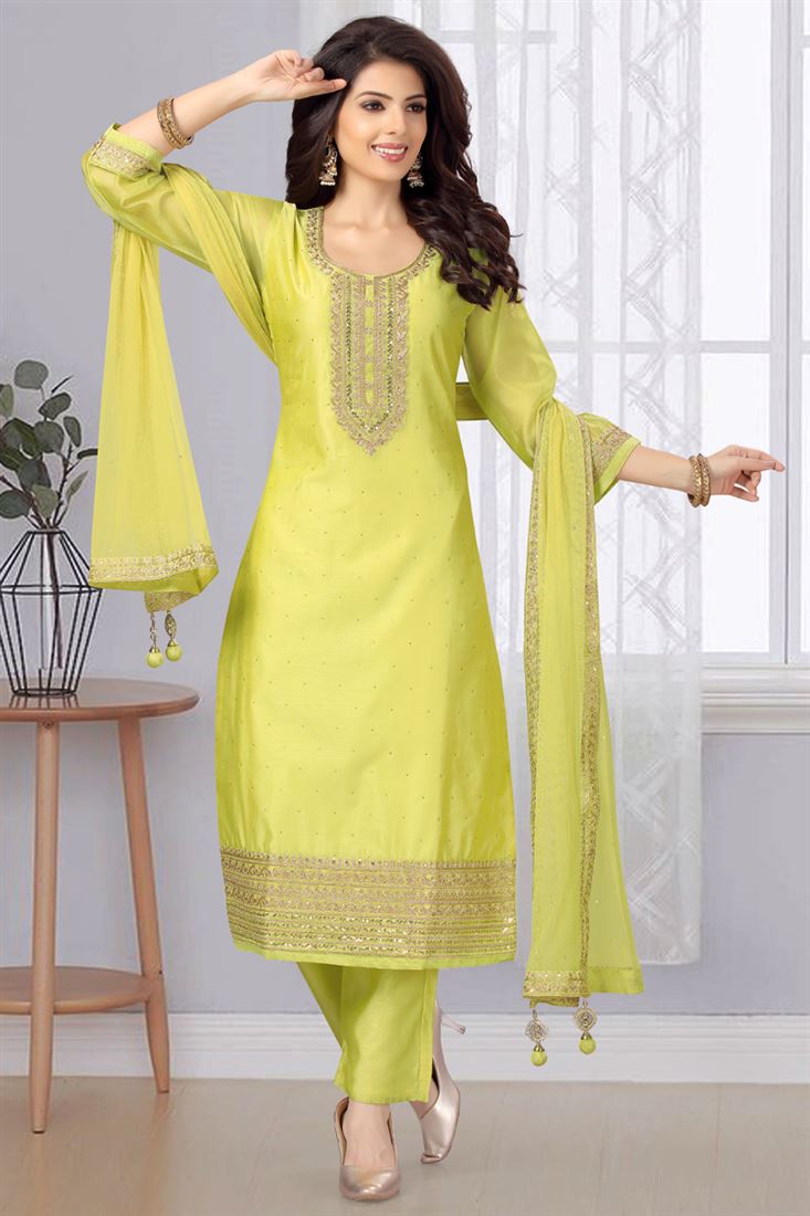 Yellow Color Pretty Chanderi Fabric Festive Look Salwar Suit