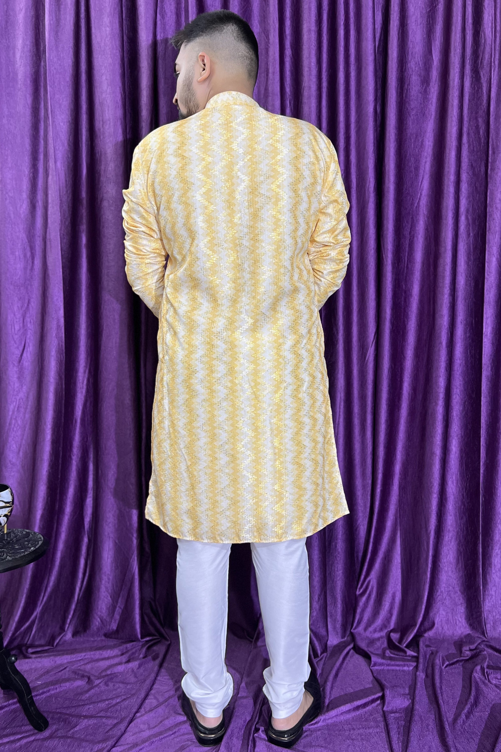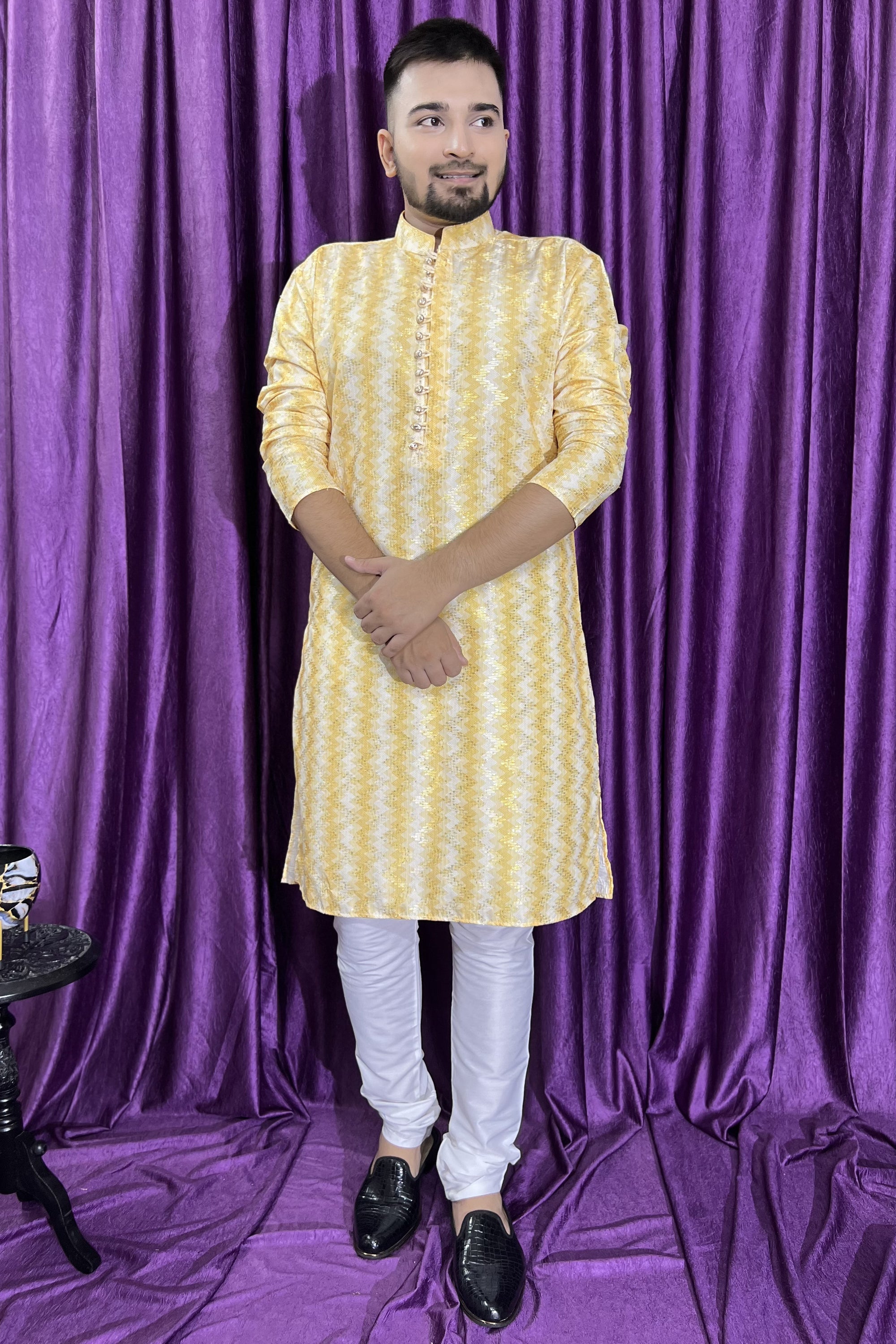 Yellow Cotton Graceful Readymade Men Kurta Pyjama