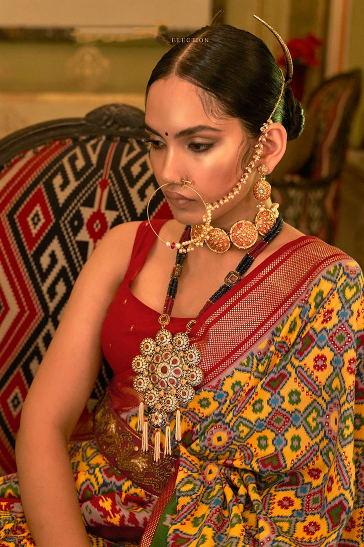 Yellow Smoothy Printed Patola Silk Saree with Designer Border